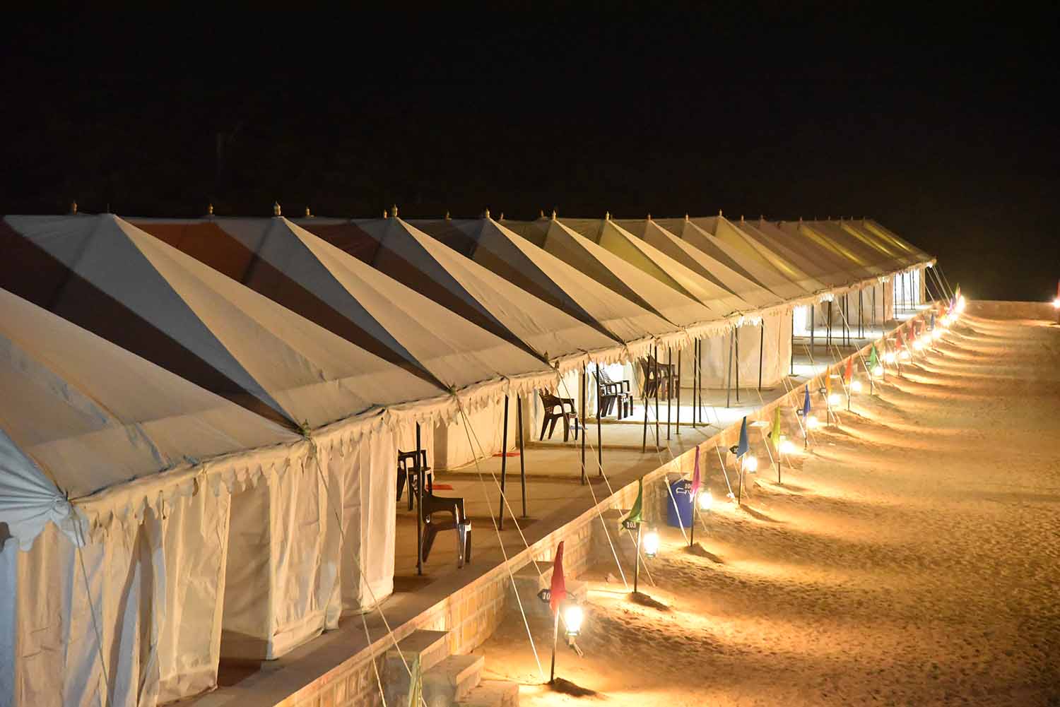 We provide fully equipped tentage accommodation with toilet facilities, electricity, thus bringing home away from home experience to you. Be close to nature, enjoy the Rajasthani heritage in our elegantly built tents having centre room, Verandah, toilets with all modern facilities including 24 hrs running water. To add to your experiences, joyous and gaiety, we have an open air restaurant. To your surprise our site is just 42 km from jaisalmer at SAM DUNES. Though at the neighborhood of city of Jaisalmer, it is well within the Desert experiences in the sand dunes playing hide and seek with you which will be Thrilling experience too. Let our endeavour be your pleasure of life