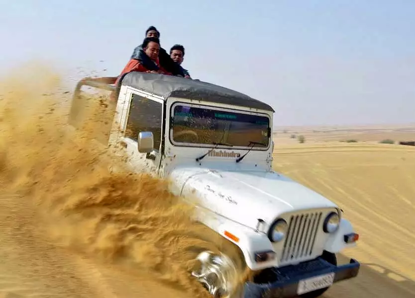 A trip to jaisalmer would be a waste without this incredibly adventurous journey into the endless heart of the desert. Experience the rapture of an exhilarating roller coaster ride as our luxury 4X4 vehicles drive you across the tranquil sand dunes leaving you captivated. In route we stop for a breathtaking view of the desert, which is giving you an opportunity to enjoy the serenity of the timeless desert. Enjoy the desert Safari either a 4 hours or a full day or overnight camping. Visit our extraordinary desert camp, where you can go for camel safari, touristic and non touristic desert safari and jeep safari. Watch the stars during night time, while listening to the music next to the bonfire. Our chef cook will prepare for you a BBQ Dinner or Lunch. Get ready for a life-time experience.